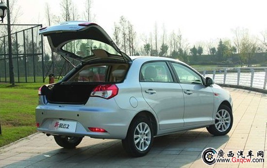 新風(fēng)云2三廂:新風(fēng)云2三廂造型協(xié)調(diào),沒有給兩廂硬加尾巴的視覺印象。行李廂采用掀背式結(jié)構(gòu),也能像兩廂那樣裝載大件行李,而且標(biāo)準(zhǔn)狀態(tài)下的容積比兩廂大。二者在乘客艙部分完全沒有區(qū)別,同樣提供了A0級(jí)中很充足的乘坐空間。據(jù)悉,同配置的三廂版將比兩廂版售價(jià)高1000元