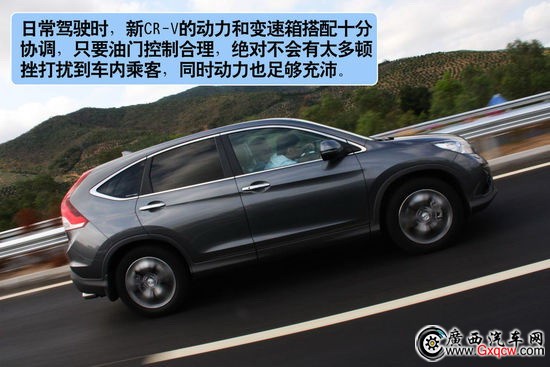 在駕駛表現(xiàn)上,CR-V起步之初的動力并不比老款更為充沛,但十分線性,這和那些喜歡采用粗暴渦輪增壓方式的競爭對手是走的完全不同的路子。而且該車的動力和變速箱搭配十分協(xié)調(diào),只要油門控制合理,絕對不會有太多頓挫打擾到車內(nèi)乘客,同時動力也足夠充沛。平穩(wěn)駕駛下,變速箱總是會合理控制轉(zhuǎn)速,以保證舒適性和油耗經(jīng)濟(jì)性。
