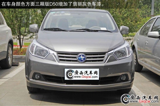 外觀方面新款車型增加了后尾翼,在提升運(yùn)動元素的同時也優(yōu)化了風(fēng)阻系數(shù),同時在車身顏色方面三廂版D50增加了翡麗灰色車漆。外觀其余方面,與2012款車型保持一致。