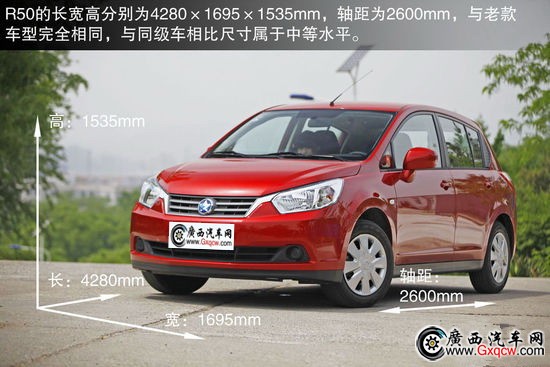 車身尺寸方面與老款車型無異,R50的長寬高分別為4280×1695×1535mm,軸距為2600mm。三廂的D50僅在車長方面增加了200mm,達(dá)到了4480mm,其余尺寸與R50相同。在車身尺寸方面,D50和R50表現(xiàn)還算中規(guī)中矩,實(shí)際內(nèi)部空間我們將在下頁展示,其表現(xiàn)很是驚人。
