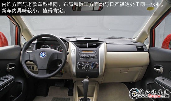 內(nèi)飾方面與老款車型相同,整體布局和做工方面均與日產(chǎn)騏達(dá)處于同一水平。只是由于成本因素,中控臺上部及車門板位置均由硬質(zhì)塑料構(gòu)成,手感偏硬。不過板材接縫很均勻,同時盡管這臺試駕車是新車,但車內(nèi)異味較小,可以看出作為合資自主的R50這在方面很有優(yōu)勢。