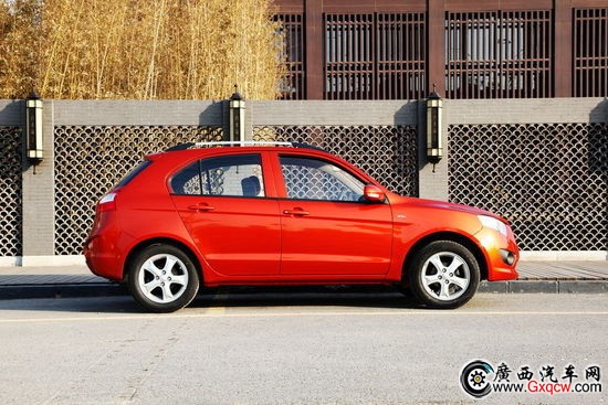車身側(cè)面的楔形特征線靈感來自三菱勁炫,下傾式車身姿態(tài)帶來了些許的動感,車頂上的行李架標(biāo)示著自身不同于普通兩廂轎車的身份。尾部的設(shè)計比較飽滿,尾燈與反光板的造形比較凌厲,后保險杠下方護板高高翹起,看來適度去野地里撒撒歡應(yīng)該問題不大。