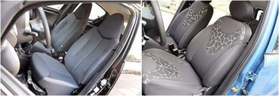 F0的座椅頗具運動氣息,一體式頭枕不能調(diào)節(jié)稍有遺憾,雖然可調(diào)節(jié)的有限,不過坐上去也不覺得難受.新QQ的座椅看似很厚,實際不太容易找到自己舒適的坐姿,最欣賞不了的就是坐墊和靠背上兩個類似褲形狀的花紋。
