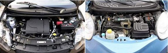 在動力上,FO僅有1.0L一個排量的發(fā)動機,最大功率50KW,最大扭矩90Nm,但比亞迪在混合動力車型方面的經(jīng)驗較為豐富,將來可能引入混合動力。圖上可以看見FO發(fā)動機艙布局整潔、合理。QQ為消費者提供了多種動力,有0.8L、1.0L和電動版,1.0L最大功率51KW,最大扭矩93Nm,動力上相差無幾,都能滿足日常使用需求。