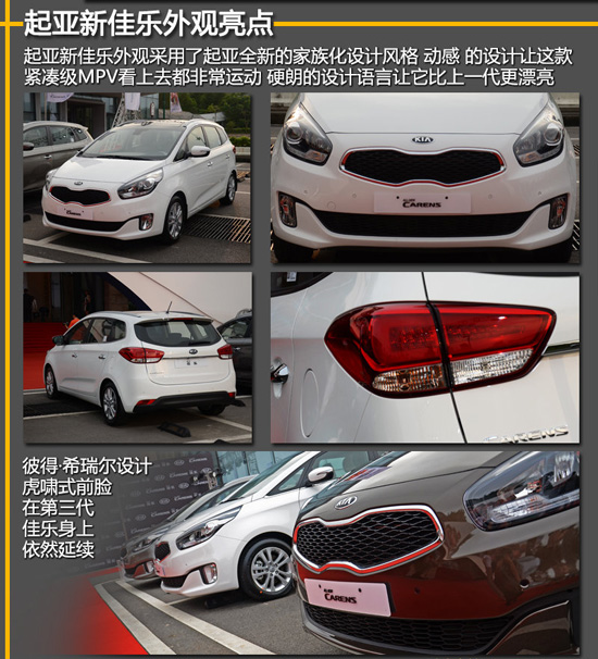 起亞新第三代佳樂由起亞首席設(shè)計(jì)師彼得-希瑞爾(Peter Schreyer)設(shè)計(jì),采用了起亞最新家族式設(shè)計(jì)風(fēng)格,虎嘯式前臉依舊在車頭上得到延續(xù)。新車下保險(xiǎn)杠與霧燈相連,造型較為圓潤,而整車的腰線十分流暢,為整車外觀營造出動(dòng)感的一面。