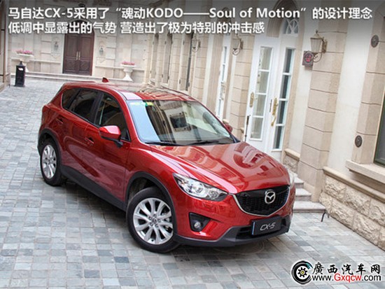 馬自達(dá)CX-5采用了“魂動(dòng)KODO——Soul of Motion”的設(shè)計(jì)理念,完美的演繹了2011年日內(nèi)瓦車展上的概念車Minagi的氣質(zhì)。馬自達(dá)CX-5在整體風(fēng)格上并沒有采用夸張的霸氣,低調(diào)中顯露出的氣勢,營造出了極為特別的沖擊感。長4555*寬1840*高1710mm車身尺寸,將其鎖定在了緊湊級(jí)SUV車型。