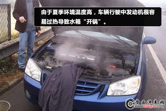 由于夏季環(huán)境溫度高,車輛行駛中發(fā)動機很容易過熱導致水箱“開鍋”。因此,車主應經(jīng)常對車輛的發(fā)動機冷卻系統(tǒng)檢查、保養(yǎng),包括水箱、節(jié)溫器、水泵、風扇等,行駛中多注意水溫表的溫度,當水溫超過100℃時,應及時停車但別立即熄火,應讓發(fā)動機怠速運轉(zhuǎn),使發(fā)動機逐漸降溫,同時掀開機艙蓋,以利于散熱,有條件的話可以分多次逐漸的加注冷卻水。
