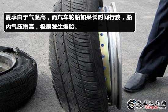 夏季由于氣溫高,公路路面溫度常常在70攝氏度以上,而汽車輪胎如果長時間行駛,胎內(nèi)氣壓增高,極易發(fā)生爆胎。大部分爆胎的情況往往是因為胎壓過高引起。但這里有個認識上的誤區(qū),其實胎壓過低同樣可引起爆胎發(fā)生危險。因為胎壓過低時,輪胎兩側大面積接觸地面,會造成“揉胎”,更多的接觸高溫路面,胎內(nèi)氣體膨脹也容易引起爆胎。