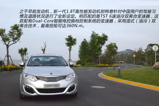全新榮威550依舊配備兩款動力:1.8T渦輪增壓發(fā)動機和1.8L自然吸氣發(fā)動機。此次試駕車型是1.8T版本,之于早前的發(fā)動機,新一代1.8T高性能發(fā)動機則特意針對中國用戶的駕駛習慣及道路狀況進行了全新設(shè)定,渦輪增壓系統(tǒng)介入時間調(diào)整至2000轉(zhuǎn)。與1.8T渦輪增壓發(fā)動機相匹配的是TST6速油冷雙離合變速器,這款配有Dual-Core智能電控換檔控制系統(tǒng)的變速器,采用濕式(油冷)雙離合技術(shù),換擋響應(yīng)時間更短,動力效能更高,最高扭矩可達360N.m。