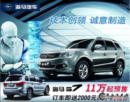海馬汽車全新SUV車型海馬S7目前預(yù)售價(jià)11—15萬元