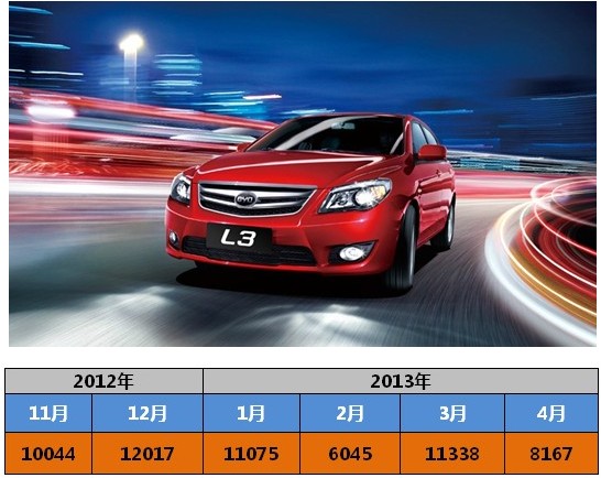 比亞迪L3銷售勢頭持續(xù)火爆,從去年11月銷售過萬達(dá)10044輛以來,12月銷售12017輛,今年1月銷售11075輛, 2月份因春節(jié)長假影響為6045輛,3月份又再次銷售11338輛,4月銷售也達(dá)了8617輛,并且同比大增87.1%。配置豐富一直是這款產(chǎn)品的殺手锏,品質(zhì)的全面提升使其口碑相傳,逐漸被消費(fèi)者認(rèn)可,而6速自動擋的搭載則讓其成為了區(qū)間“唯一”可選。