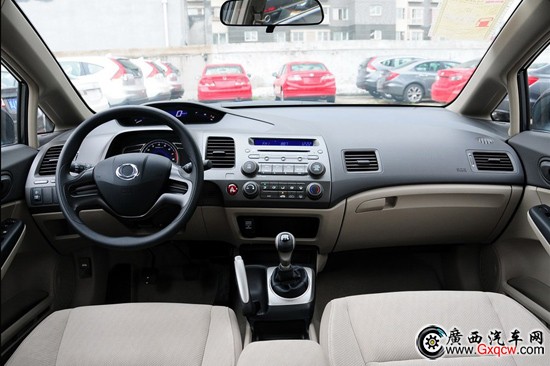 思銘的內(nèi)飾也與思域的保持高度一致,設(shè)計(jì)比較中庸,個(gè)人覺得比外觀看起來要舒服許多。與其他車型一樣都是家居味十足,思銘采用上深下淺的配色方案,符其合家轎的定位。中控按鍵和旋鈕的布局也是簡(jiǎn)單明了,比較實(shí)用。配置上,思銘標(biāo)配ABS+EBD,正副駕駛氣囊、后視鏡電動(dòng)調(diào)節(jié)、鋁合金輪轂、座椅高低調(diào)節(jié)、后排座椅整體放倒、手動(dòng)空調(diào)、方向盤上下調(diào)節(jié)等,沒有剎車輔助、真皮座椅、真皮方向盤等,配置甚至還不如其它三款車型,相對(duì)于十一萬多的價(jià)格配置十分寒酸。