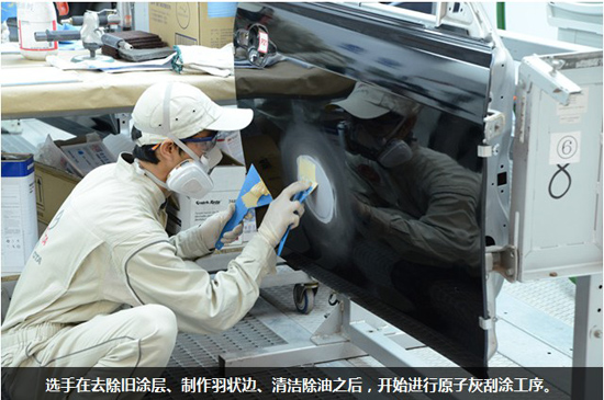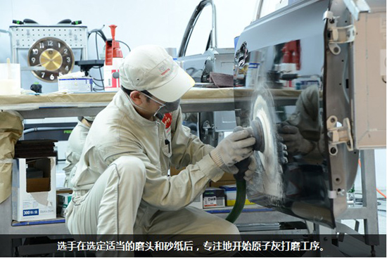 鈑金和噴漆是汽車維修常見的項目,但要做好,并不簡單。僅噴漆一項就分為上十道工序,一環(huán)扣一環(huán),一項工序處理不好就會影響到最終的噴涂效果。“噴涂對技能要求很高,”一位選手告訴記者,“溫度、距離、時間等都會對噴涂效果造成影響,只有每一道工序都嚴格按照廣汽豐田噴漆標準完成,才能確保最終的出品質(zhì)量。”