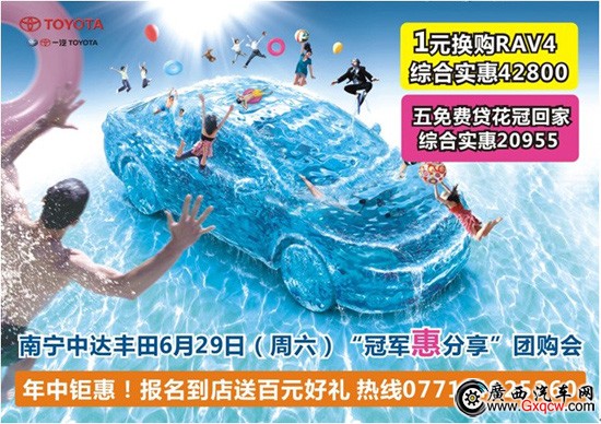全球累計銷量40000000輛,創(chuàng)吉尼斯世界紀(jì)錄,四十七年每分鐘誕生1位新車主,相連可環(huán)繞地球4.5圈, 這就是卡羅拉的奇跡——誰會是下一個奇跡創(chuàng)造者呢?感恩4千萬車主的信賴,廣西唯一的一汽豐田全國十佳金牌店——南寧中達(dá)豐田“冠軍惠分享”團(tuán)購會 6月29日(周六)火辣讓利“豐甜送”,分享好車,共創(chuàng)奇跡人生。地址:白沙大道24號亭江立交橋旁。