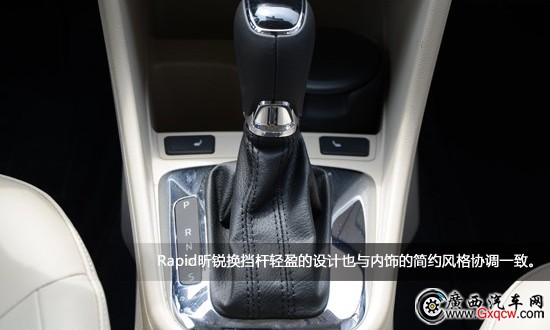 Rapid昕銳自動擋車型的換擋桿經(jīng)過全新的設(shè)計,擋位解鎖按鈕位于換擋桿前部,換擋時只需將手直接握在換擋桿上,手指自然彎曲按壓擋位解鎖按鈕即可實現(xiàn)換擋,帶來更舒適便利的駕控感受。與此同時,Rapid昕銳換擋桿輕盈的設(shè)計也與內(nèi)飾的簡約風格協(xié)調(diào)一致。