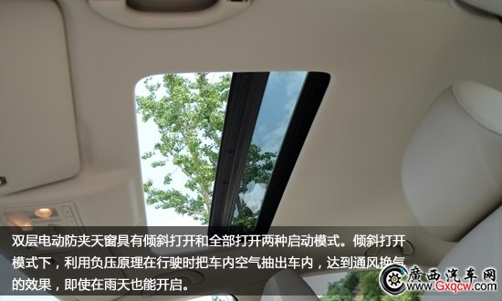 雙層電動防夾天窗具有傾斜打開和全部打開兩種啟動模式。傾斜打開模式下,利用負壓原理在行駛時把車內(nèi)空氣抽出車內(nèi),達到通風換氣的效果,即使在雨天也能開啟。此外,天窗還帶有人性化的防夾功能,在天窗關(guān)閉時,如果遇到阻力天窗將自動后退,避免夾傷。