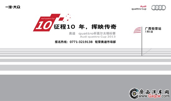 廣西鉅榮奧迪一直致力于為廣西地區(qū)廣大車主提供完善與周到的奧迪整車銷售及售后服務,力求打造專屬于奧迪車主的尊享品質生活。2013年“奧迪quattro杯高爾夫錦標賽廣西鉅榮分站賽”即是由廣西鉅榮為奧迪客戶精心準備的品牌專享活動(活動當天,廣西鉅榮奧迪為客戶提供的鉅惠盛宴同時在進行,A4L最高優(yōu)惠5萬,A6L最高優(yōu)惠11萬)。我們將讓您感受奧迪品牌與生俱來的動感和進取精神,以及高爾夫運動優(yōu)雅動感的特質和不斷追求卓越的精神。報名熱線:0771-3219138