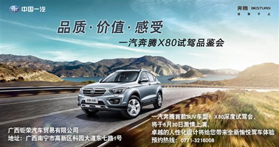 參與對象:有駕照且車齡滿兩年以上的市民,奔騰所有潛在客戶、老客戶、汽車愛好者,銷售顧問邀約潛在客戶