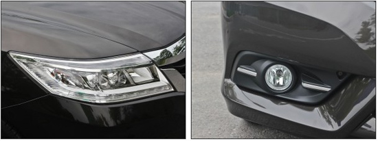 凌派粗獷的大尺寸鍍鉻格柵與前大燈在外觀上進行了很好的結合,可能是考慮到國內(nèi)消費者的喜好,凌派車身周圍采用了不少的鍍鉻裝飾。另外車身側面上揚的線條與折線搭配,進一步突出了視覺上的力量感。
