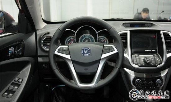 內(nèi)飾方面,致尚XT與三廂版的長安逸動(dòng)存在共通之處,中控面板是相同的風(fēng)格,桶型儀表、多功能方向盤、多媒體系統(tǒng)大尺寸液晶屏等都是相同的設(shè)計(jì)。不同的是致尚XT是全黑內(nèi)飾設(shè)計(jì),搭配銀色面板裝飾,顯得更加個(gè)性張揚(yáng)。