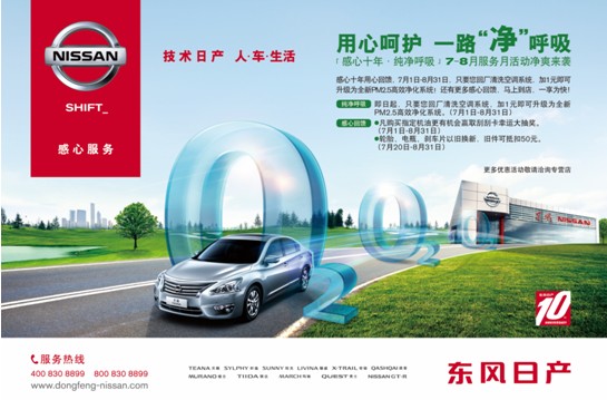 7月1日-8月31日,東風日產(chǎn)感恩十周年,廣緣科園店率先用心回饋,積極改善車主用車的用車生活。