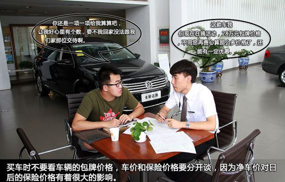 購車一定不要只看車的包牌價,車價、保險價以及其它價格一定要分開談,因為凈車價直接影響購置稅和日后的保險價格。