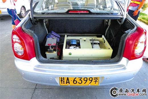 記者看到,該考試車和以前的車外觀一樣,但打開后備箱,發(fā)現(xiàn)有一個像電腦主機一樣的東西。這就是電腦評判系統(tǒng),可以感知考場的紅外線裝置,自動提醒學(xué)員進(jìn)行考試操作。