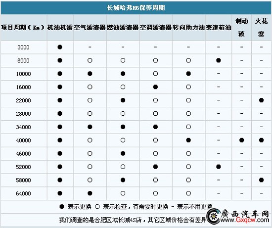 長(zhǎng)城哈弗H6從第五次保養(yǎng)開始自費(fèi),以后每6000公里保養(yǎng)一次,主要是更換機(jī)油機(jī)濾。其中空氣濾清器每行駛5000公里更換一次,發(fā)動(dòng)機(jī)正時(shí)皮帶每行駛100000公里更換一次,發(fā)動(dòng)機(jī)機(jī)油和機(jī)油濾清器每隔6000公里或6個(gè)月更換一次。
