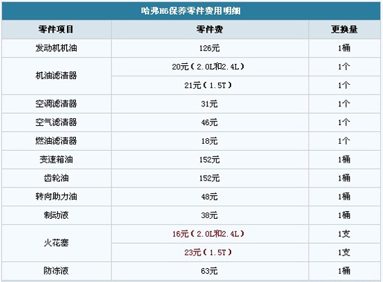 從上表可以看出,哈弗H6自然吸氣發(fā)動(dòng)機(jī)和渦輪增壓發(fā)動(dòng)機(jī)在保養(yǎng)方面差異不大,除了機(jī)油濾清器和火花塞以外,其它配件售價(jià)沒有區(qū)別,而其中機(jī)油濾清器僅僅多了1元錢,火花塞雖然多了7元錢/個(gè),但仍在可接受范圍內(nèi)。