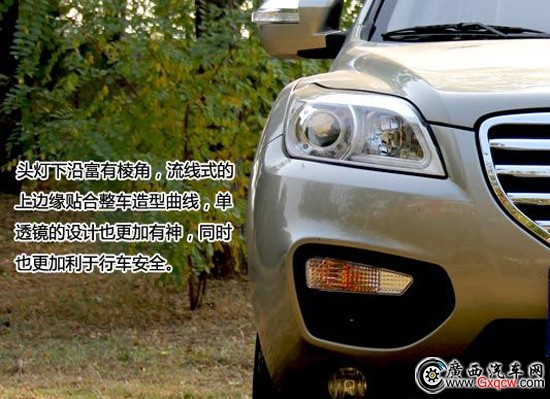力帆X60的外觀給人耳目一新的感覺,擺脫了自主車型效仿、模仿的痕跡,突出了自己的品牌形象。盾形鍍鉻中網(wǎng)顯得大氣、粗狂,為整體車身的硬朗氣質(zhì)加了不少分?jǐn)?shù)。頭燈下沿富有棱角,流線式的上邊緣貼合整車造型曲線,單透鏡的設(shè)計(jì)也更加有神,同時(shí)也更加利于行車安全。