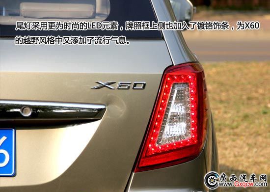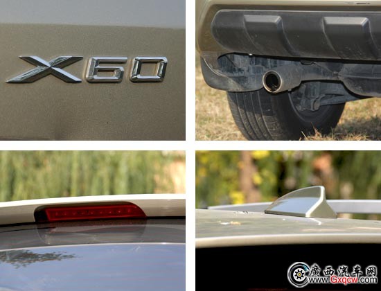 尾燈采用更為時(shí)尚的LED元素,牌照框上側(cè)也加入了鍍鉻飾條,為X60的越野風(fēng)格中又添加了流行氣息。排氣管隱藏在后杠下方,使車尾整體性更加。排氣管帶有鍍鉻裝飾,如在精化一下做工,效果會(huì)更好。