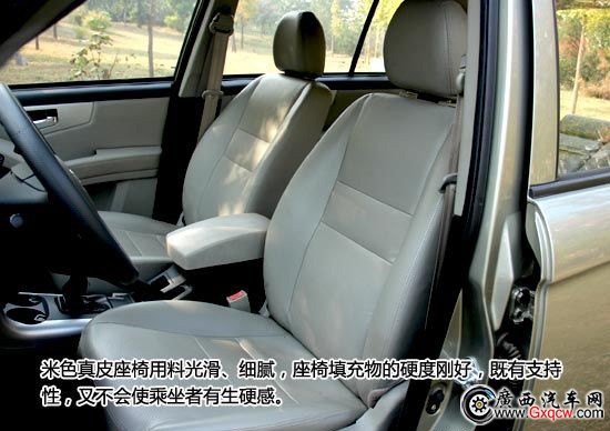 力帆X60在座椅方面也是下了不少功夫。米色真皮座椅用料光滑、細(xì)膩,座椅填充物的硬度剛好,既有支持性,又不會(huì)使乘坐者有生硬感。