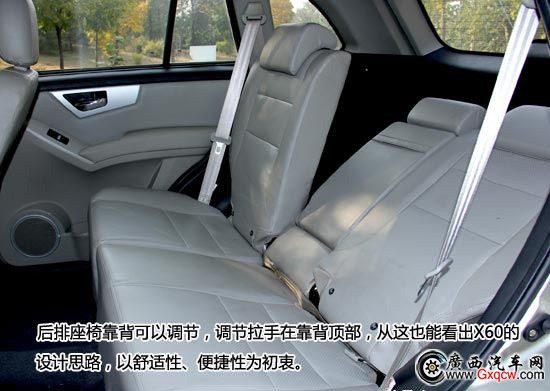后排座椅靠背可以調(diào)節(jié),調(diào)節(jié)拉手在靠背頂部,從這也能看出X60的設(shè)計(jì)思路,以舒適性、便捷性為初衷。