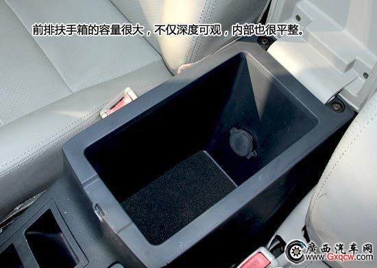 中控區(qū)域的儲(chǔ)物空間豐富,共設(shè)有有三個(gè)小型儲(chǔ)物格,手套箱容積一般,但形狀較為規(guī)整,有利于存放物品。前排扶手箱的容量很大,不僅深度可觀,內(nèi)部也很平整。