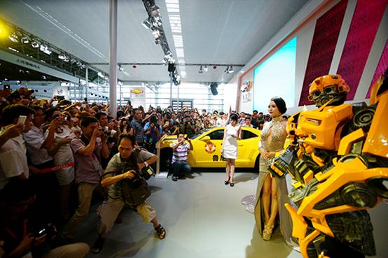 上午10時,百變超模吳雨嬋來到現場,助陣本屆汽車文化節(jié),登陸“尚格大舞臺”及車商展臺與觀眾互動、在雪佛蘭展臺與還“大黃蜂”親密邂逅,活動現場氣氛被不斷引爆。