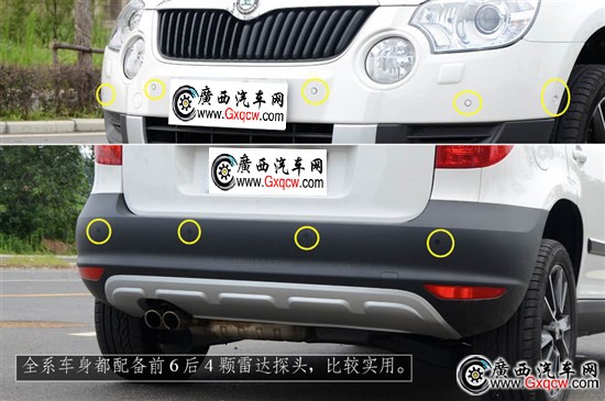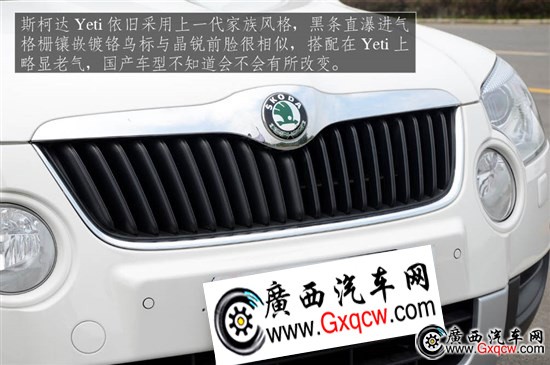 由于斯柯達Yeti是四年前推出的車型,所以前臉依舊是斯柯達上一代家族風格,而沒有采用新一代設(shè)計。黑條直瀑進氣格柵鑲嵌鍍鉻鳥標與晶銳前臉很相似,搭配在斯柯達Yeti上略顯老氣,國產(chǎn)車型不知道會不會有所改變。