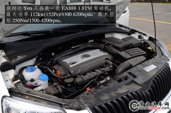 斯柯達(dá)Yeti只搭載一款EA888 1.8TSI發(fā)動(dòng)機(jī),最大功率112kw(152Ps)/4300-6200rpm,最大扭矩250Nm/1500-4200rpm。相比途觀1.8TSI動(dòng)力弱了6kw,不過油耗卻比途觀低,官方公布的油耗為百公里8.4L,而途觀為9L。
