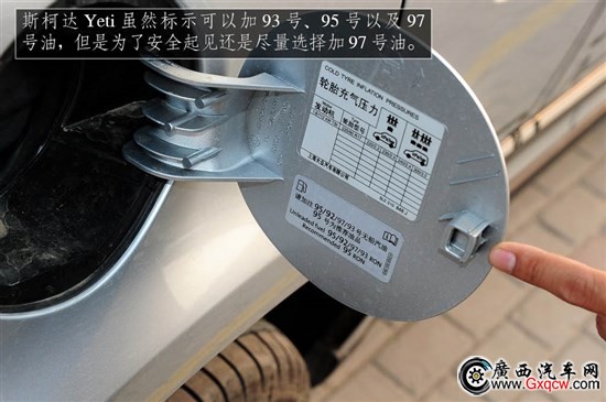 斯柯達(dá)Yeti雖然標(biāo)示可以加93號(hào)、95號(hào)以及97號(hào)油,但是為了安全起見還是盡量選擇加97號(hào)油。