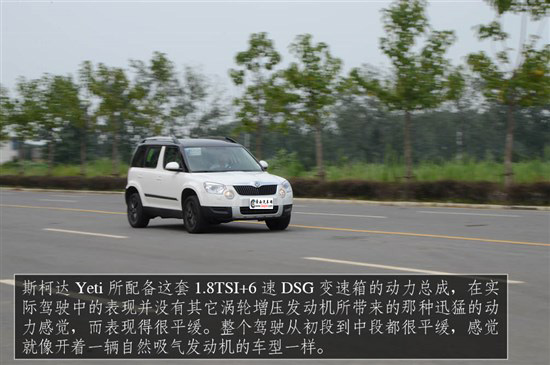 斯柯達(dá)Yeti所配備這套1.8TSI+6速DSG變速箱的動(dòng)力總成,在實(shí)際駕駛中的表現(xiàn)并沒有其它渦輪增壓發(fā)動(dòng)機(jī)所帶來(lái)的那種迅猛的動(dòng)力感覺,而表現(xiàn)得很平緩。整個(gè)駕駛從初段到中段都很平緩,感覺就像開著一輛自然吸氣發(fā)動(dòng)機(jī)的車型一樣。