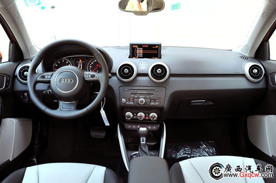 A1的內(nèi)飾采用奧迪家族典型風(fēng)格,做工精致質(zhì)感不錯,透露著一股時尚感和科技感。簡約的中控臺配合四個圓形出風(fēng)口令整體看上去有些喜感和一絲調(diào)皮。還配備了MMI的人機(jī)交互系統(tǒng),對于女性用戶來說更為方便實(shí)用。