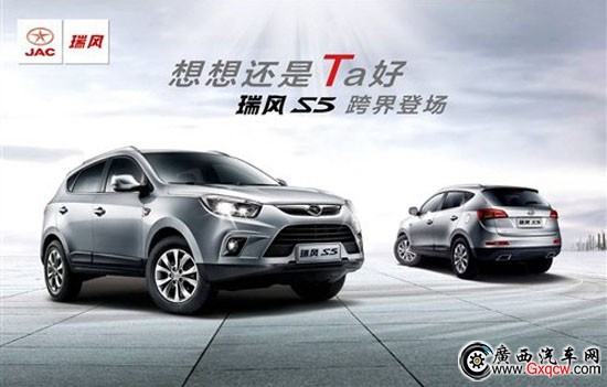 男人的座駕 女人的選擇—瑞風(fēng)S5!江淮首款城市SUV瑞風(fēng)S5現(xiàn)已跨界上市!江淮瑞風(fēng)S5外觀時(shí)尚、動感,充滿活力。比起瑞鷹,更加精致。完美繼承歐系血統(tǒng)及先進(jìn)造車?yán)砟睿蛟於际行耂UV新典范;動感的前保險(xiǎn)杠進(jìn)氣口完美繼承了江淮汽車品牌一貫的運(yùn)動風(fēng)格;采用高性能地盤科技、ABS+EBD系統(tǒng)、高強(qiáng)度車體,全方位安全氣囊、出色NVH(靜謐性)性能等等前沿科技!