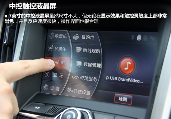 配置豐富:從配置表來看,艾瑞澤7全系標配行車電腦、多功能方向盤、后視鏡電加熱。高配車型擁有藍牙+導(dǎo)航系統(tǒng)、倒車影像,此外,高配車型還配備了一鍵啟動、無鑰匙進入、自動大燈等配置。值得一提的是中控7英寸液晶屏,在顯示效果和靈敏度上都有很好的表現(xiàn),界面設(shè)計也很合理,這套娛樂系統(tǒng)還支持USB、AUX、SD卡,并且可以識別ipod。