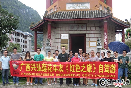 2013年7月27-28日,廣西興弘蓮花汽車4S店為回饋老客戶對蓮花汽車的支持和關(guān)注,攜手廣西電視臺聯(lián)合舉辦了大型“酷夏獻愛心 興弘蓮花紅色之旅車友會自駕游”活動。此次自駕游的目的地是百色和巴馬紅色革命老區(qū)。蓮友們暢游了號稱“天下第一”的百魔洞;為鳳凰的老黨員送去了來自興弘蓮花的愛心慰問;還在充滿紅色記憶的百色起義紀念館以及列寧巖瞻仰緬懷革命先輩。本次活動不僅給車主們提供了一個良好的自駕游休閑活動,同時也給車主們提供了一個交流分享用車感受的平臺,大大地提升了客戶的歸屬感。下面,閑話少說,讓我們一起跟隨鏡頭,回顧一下此次活動的精彩瞬間。