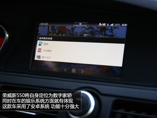 娛樂(lè)和舒適配置上面,不能忽略納智捷與HTC聯(lián)合開發(fā)的智能系統(tǒng),初始界面與HTC Sence極為相似,大部分功能都需要連接HTC安卓手機(jī)實(shí)現(xiàn)。而廠商冠以數(shù)字家轎的全新榮威550在娛樂(lè)系統(tǒng)上絕對(duì)配得上這個(gè)稱號(hào),APP應(yīng)用,iVoka語(yǔ)音功能等一應(yīng)具全,車載藍(lán)牙功能,除了鏈接稍慢以外,以可以實(shí)現(xiàn),藍(lán)牙電話、藍(lán)牙通訊錄、藍(lán)牙音樂(lè)、藍(lán)牙數(shù)據(jù)傳輸。