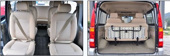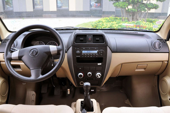 中控臺采用了上深下淺的雙色設計,一體化的中控臺樣式借鑒了轎車的設計,整體感覺比較舒服。中控臺采用硬質(zhì)塑料制成,但質(zhì)地和做工還不錯。三輻式設計的方向盤造型中規(guī)中矩,其中喇叭控制區(qū)設計的比較大,實用方便,如果中間的東風LOGO設計成鍍鉻的材質(zhì),會更漂亮。中央控制區(qū)的造型對稱規(guī)整,各區(qū)域劃分明顯,外側兩條銀灰色的裝飾條,為車內(nèi)增添了一絲時尚感。后面三排的桌椅采用了加厚的設計,其中前面兩排的座椅不僅配備了三點式安全帶,而且還可以四向調(diào)節(jié)。