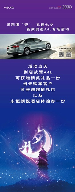 緣來團(tuán)“鉅”,禮遇七夕,就在這一天,讓奧迪A4成為你奔向幸福的浪漫座駕吧!