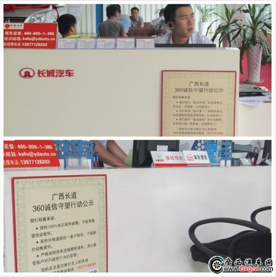 為響應(yīng)長城汽車對(duì)消費(fèi)者負(fù)責(zé)的號(hào)召,長城汽車廣西長道“360誠信守望行動(dòng) 你我同行”我們向廣大市民承諾誠信經(jīng)營,將整車、配件、服務(wù)標(biāo)準(zhǔn)等信息透明化,打造客戶滿意,增強(qiáng)品牌信賴。