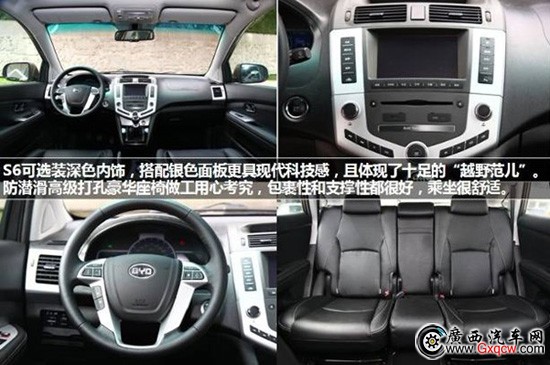 S6提供兩種內(nèi)飾可供選擇,淺色內(nèi)飾簡(jiǎn)單素雅,深色內(nèi)飾動(dòng)感時(shí)尚。細(xì)節(jié)處的設(shè)計(jì)和做工也非常考究,四幅式多功能方向盤(pán)、盾形中控臺(tái)設(shè)計(jì)、防潛滑高級(jí)打孔豪華座椅等,無(wú)一不體現(xiàn)比亞迪的細(xì)致和用心。