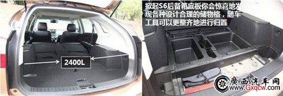 S6的后備箱容積達(dá)到1084L,將后排座椅完全放倒收起后,空間可拓展至2400L,儲(chǔ)物能力突出,不僅可以應(yīng)付家庭外出自駕游的需求,就連小型搬家都沒(méi)有問(wèn)題。比亞迪S6的后備箱隔板下面還特別設(shè)置了不同大小的儲(chǔ)物格,各種隨車(chē)工具可以更合理地歸置。