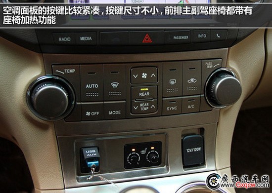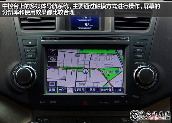 中控臺上的多媒體導航系統(tǒng),主要通過觸摸方式進行操作,屏幕的分辨率和使用效果都比較合理,這套系統(tǒng)的上方還有一個小的顯示屏,主要顯示時間、平均油耗等信息?照{(diào)面板的按鍵比較緊湊,按鍵尺寸不小,前排主副駕座椅都帶有座椅加熱功能。